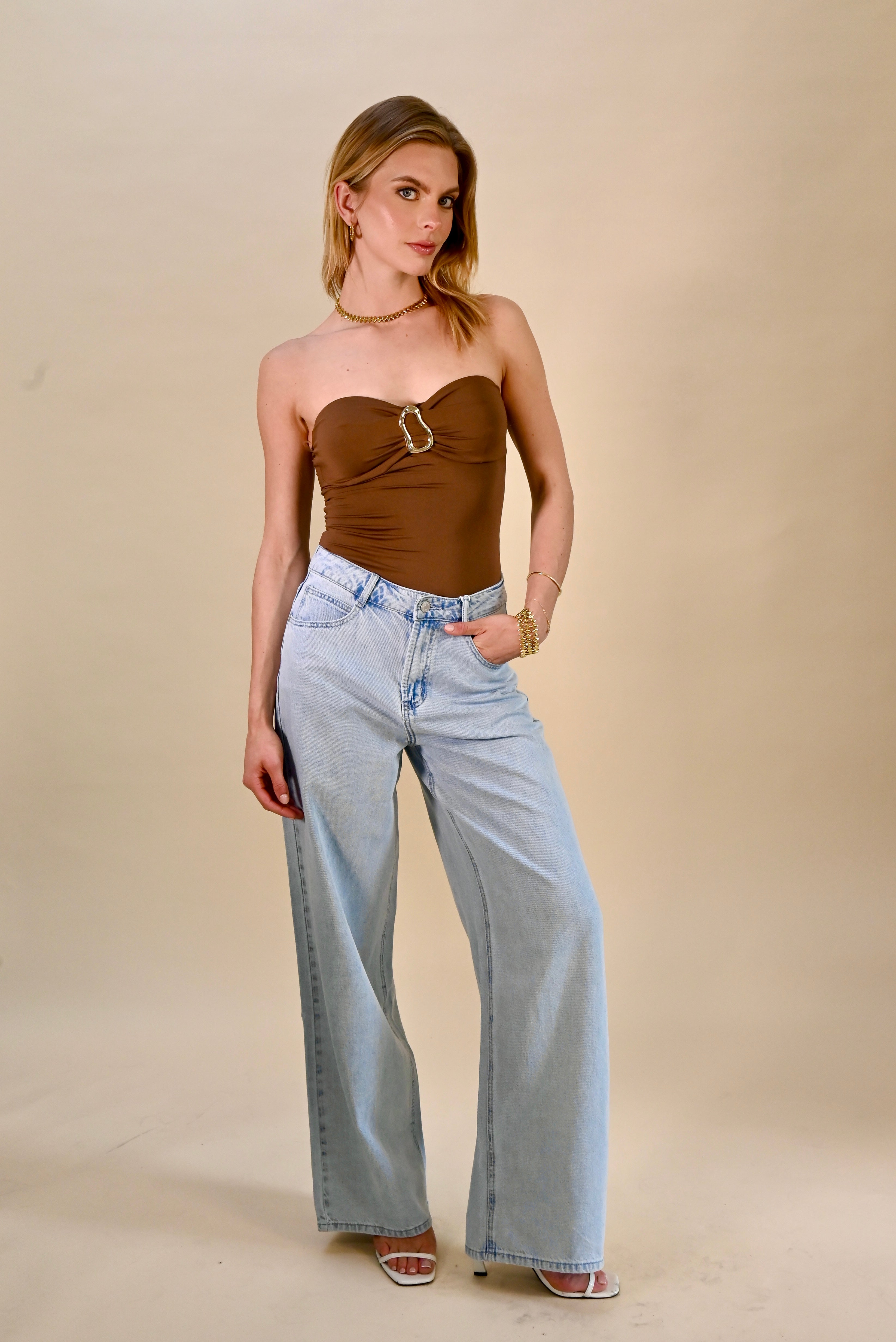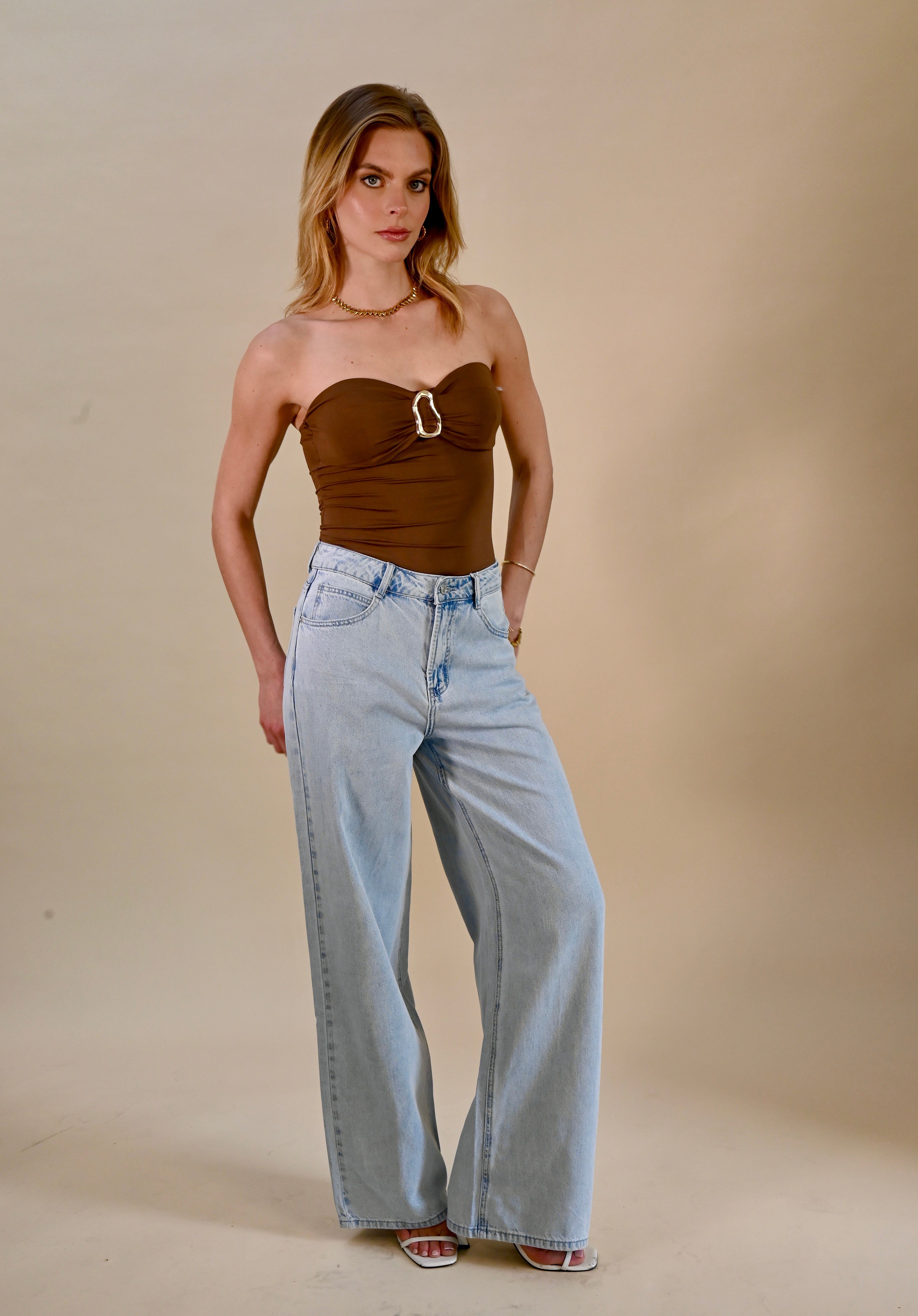 Body in choco kleur met gouden gesp