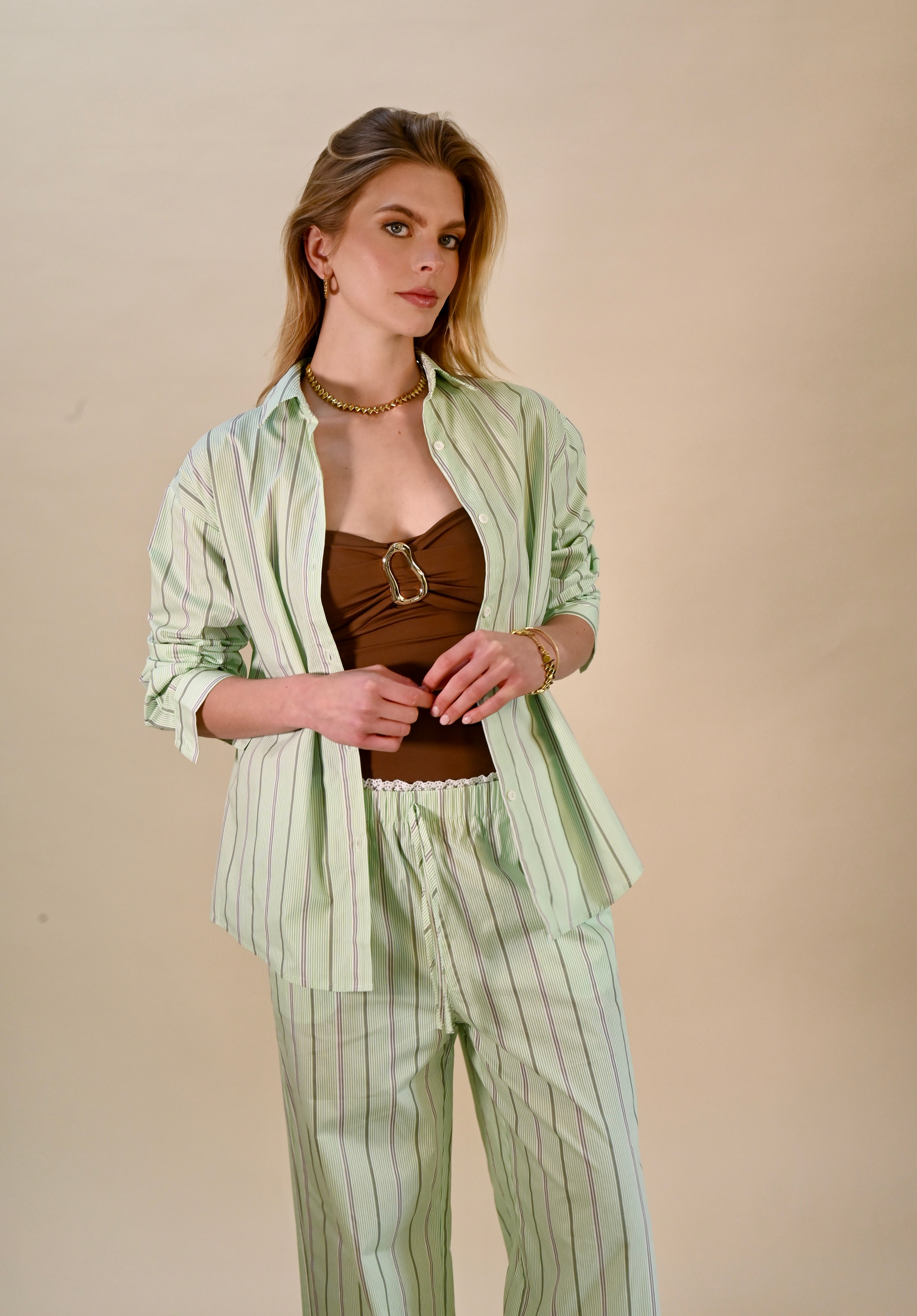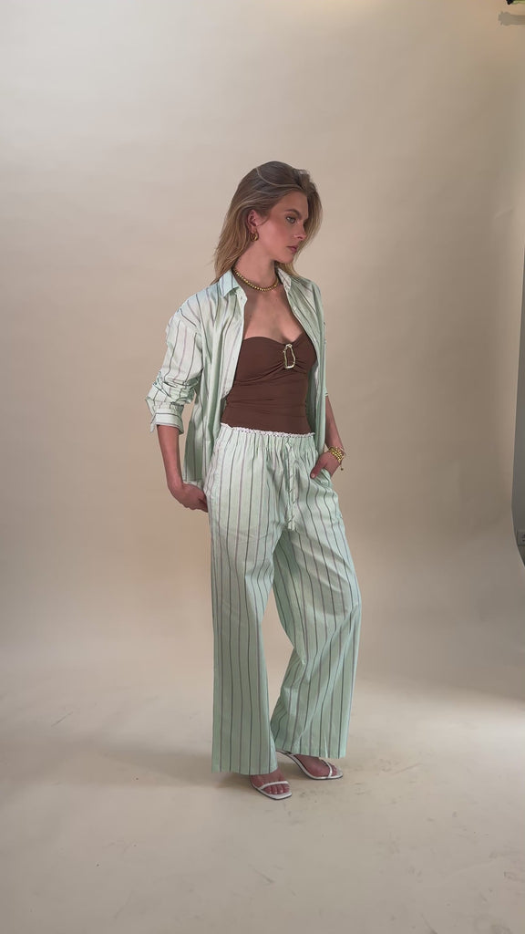 Gestreepte lichtgroene frisse zomer set