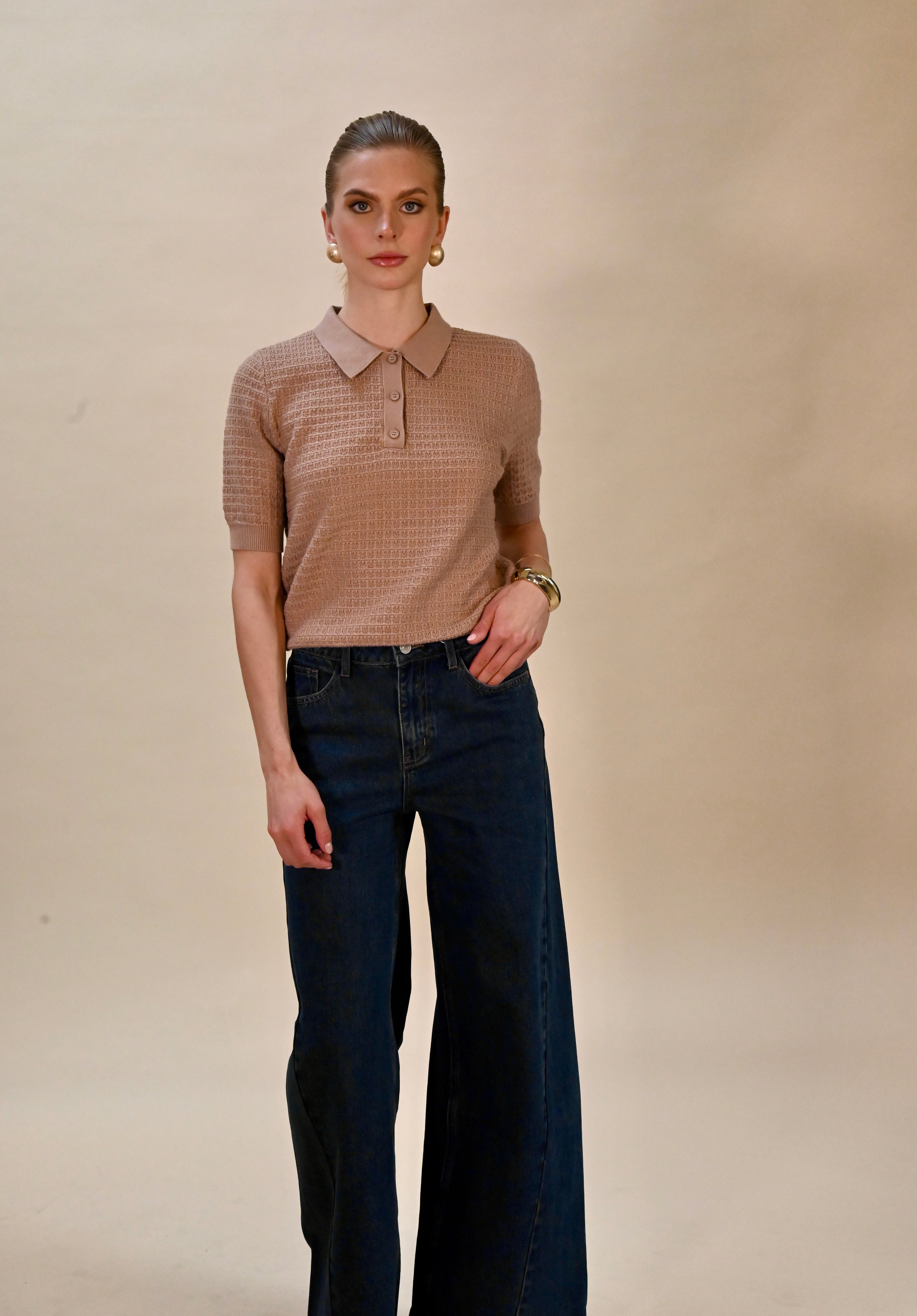 Taupe kleurige polo shirt