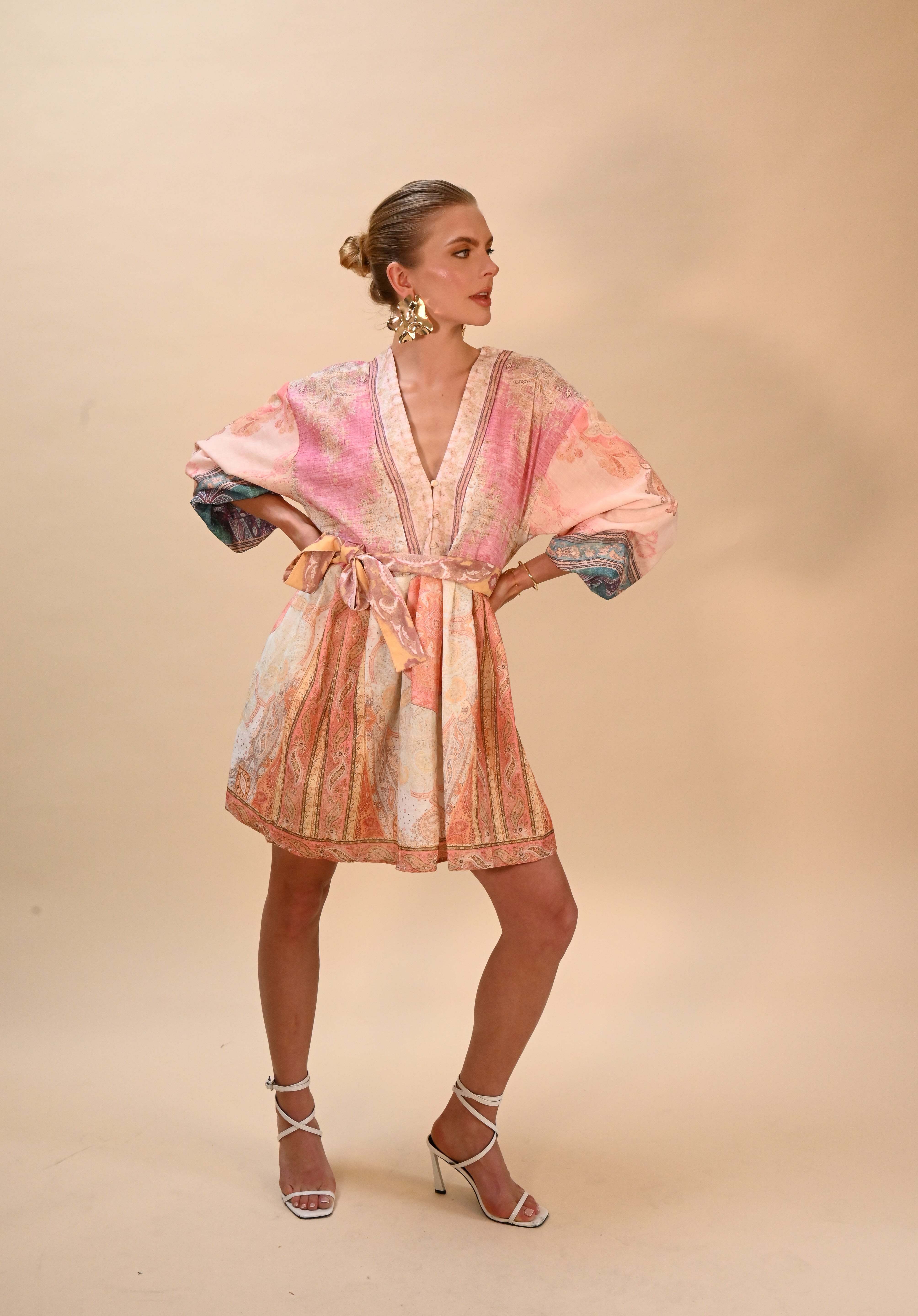 Roze / beige / zacht gele zomer jurk