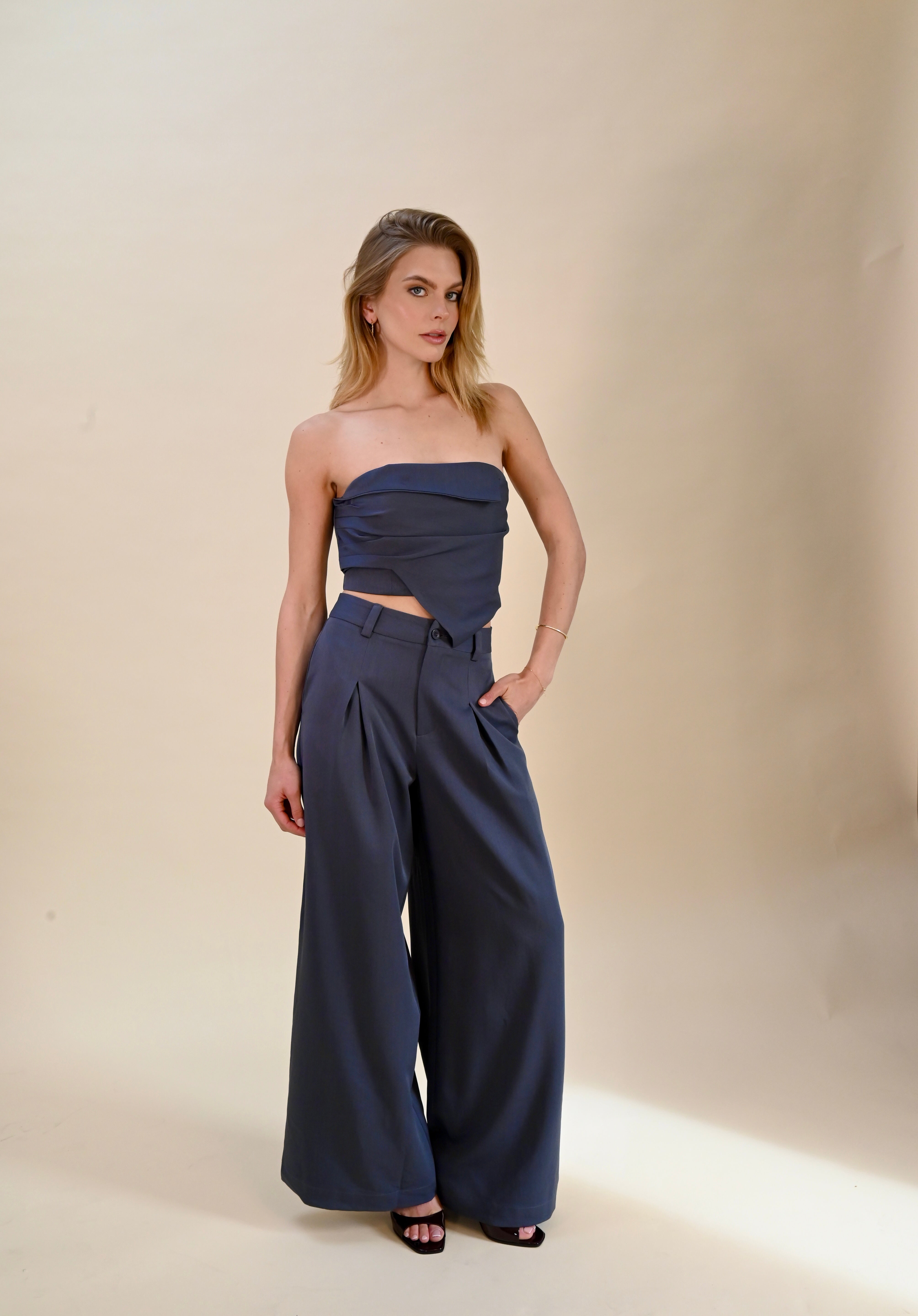 Setje in grafite kleur met broek en strapless top