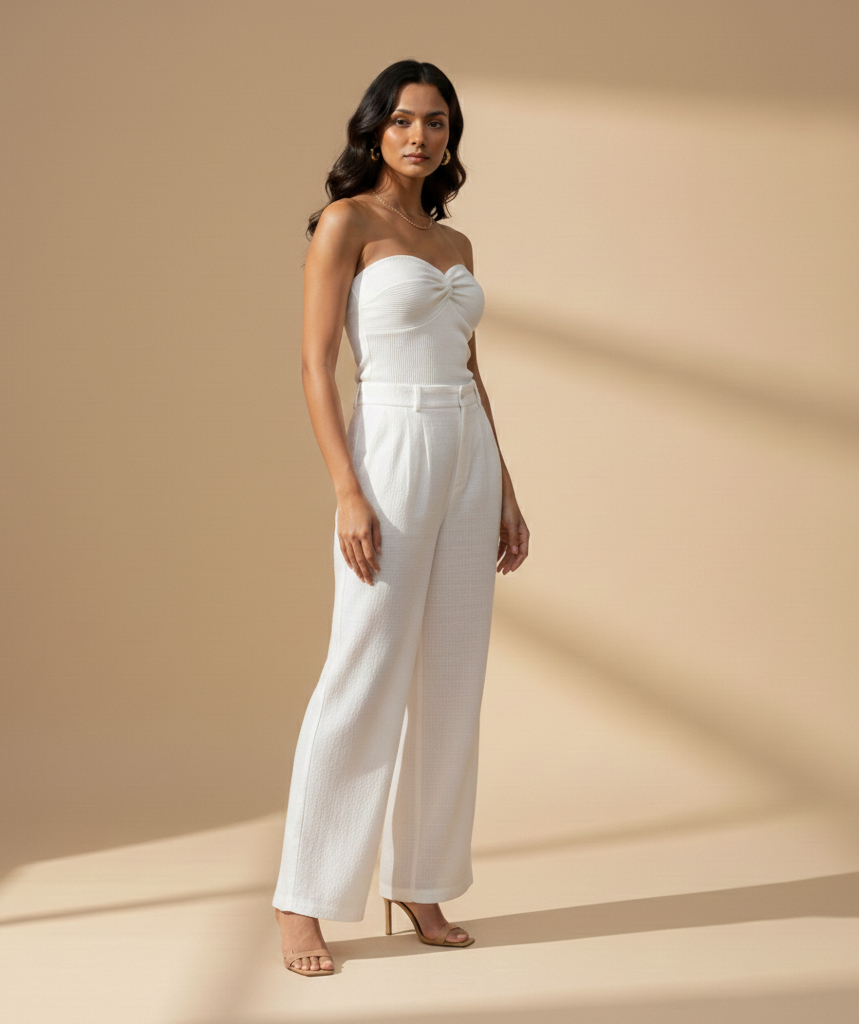 We presenteren onze elegante witte pantalonbroek, een chique stuk dat verfijning en stijl combineert. Met zijn langwerpige silhouet en moderne design is deze broek perfect voor het creëren van elegante en verfijnde looks. Gemaakt van hoogwaardige materialen, biedt het comfort en een onberispelijke pasvorm. Voeg een vleugje glamour toe aan je garderobe met deze chique witte pantalons en wees klaar om bij elke gelegenheid met zelfvertrouwen op te vallen.