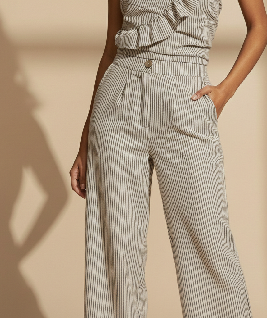 We presenteren onze charmante pantolabroek, een veelzijdig stuk dat stijl en comfort combineert voor verschillende gelegenheden. Met zijn elegante ontwerp en onberispelijke afwerking is deze broek perfect voor het creëren van ontspannen en stijlvolle looks. Het is gemaakt van hoogwaardige materialen, biedt een comfortabele pasvorm en voelt zacht aan op de huid.