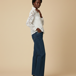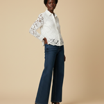 Luchtige en losvallende kanten blouse met een rijk bloemenpatroon. De licht reliëfachtige structuur zorgt voor diepte en een luxe uitstraling. De lange mouwen zijn rechtvallend en afgewerkt met manchetten in effen stof. De blouse heeft een klassieke kraag en een doorlopende knoopsluiting aan de voorkant. De blouse is volledig gevoerd en niet doorschijnend.