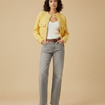 Vest met rits aan de voorzijde en twee grote opgestikte zakken met knoopsluiting. De lange mouwen en de geribde boord aan de onderzijde zorgen voor een mooie pasvorm. De opstaande kraag sluit af met knoopdetail