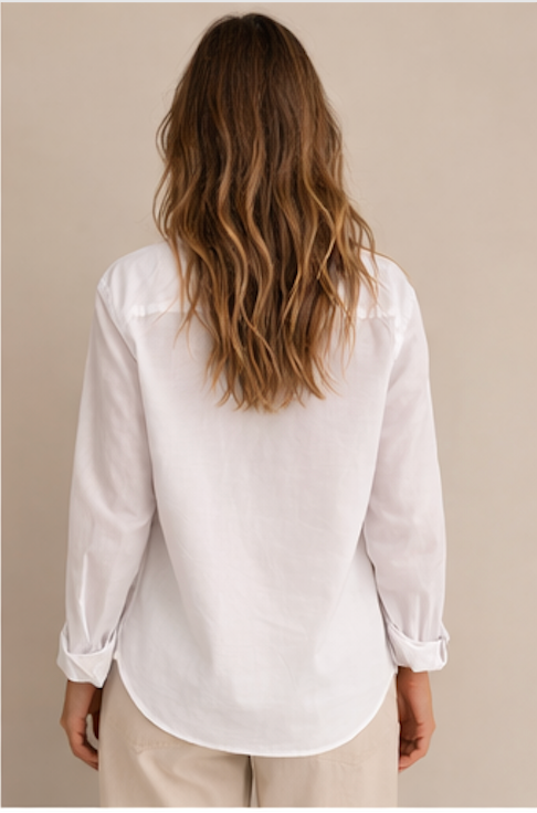 Camisa branca ou azul de mangas compridas